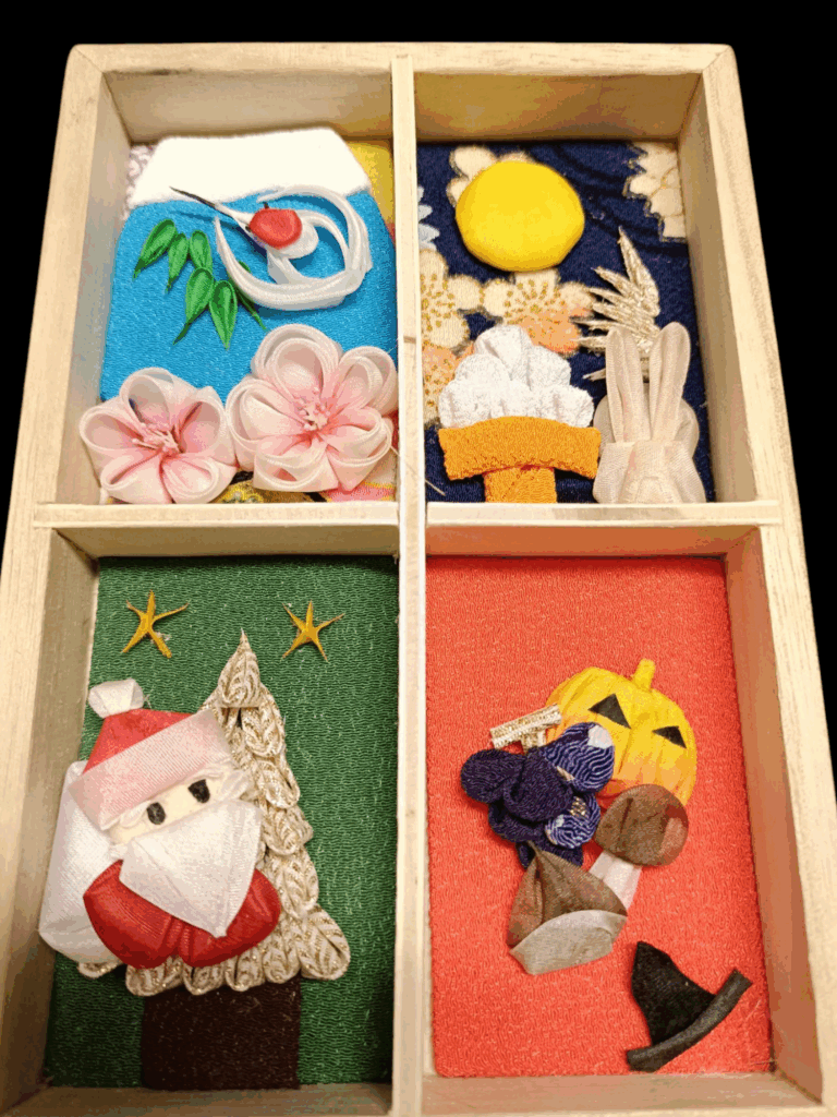 4升箱に季節を飾る冬行事⁻つまみ細工で作るお飾り特別講座実施中