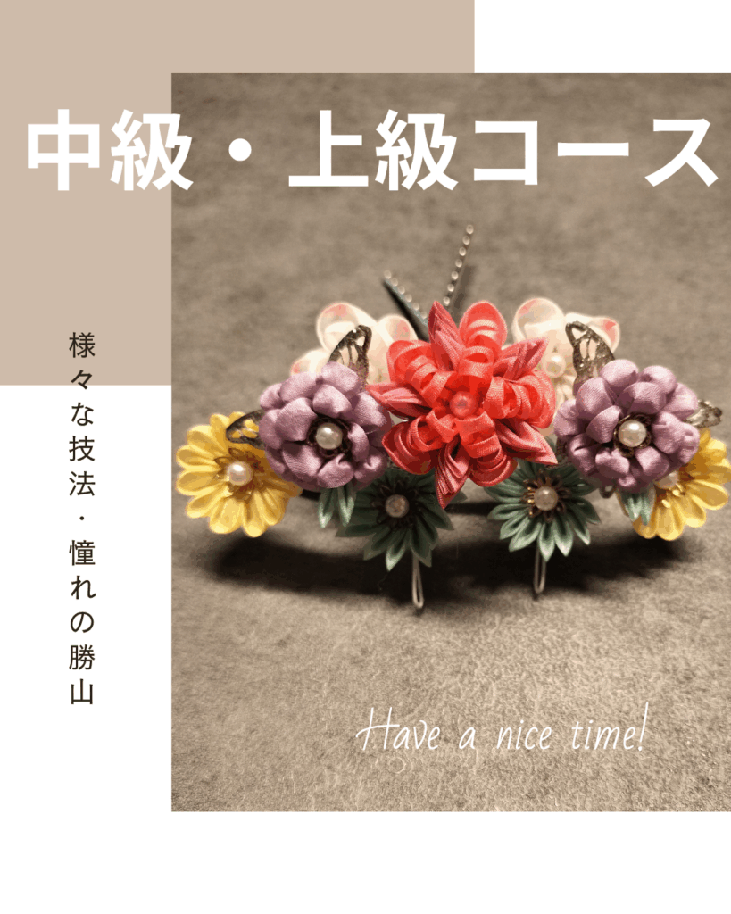 あなたのペースで無理なく上達できるカリキュラムで、憧れの舞妓さんの髪飾りや、繊細なブローチ、季節を彩るつまみ画など、作品の幅をどんどん広げていきましょう!!