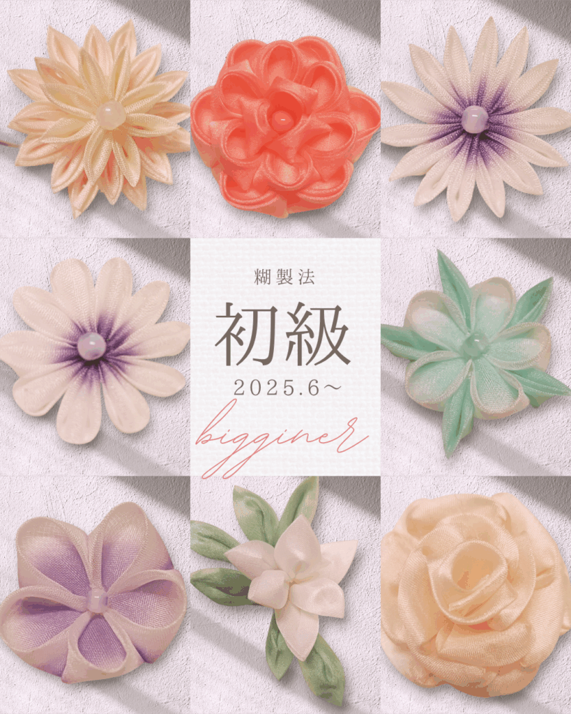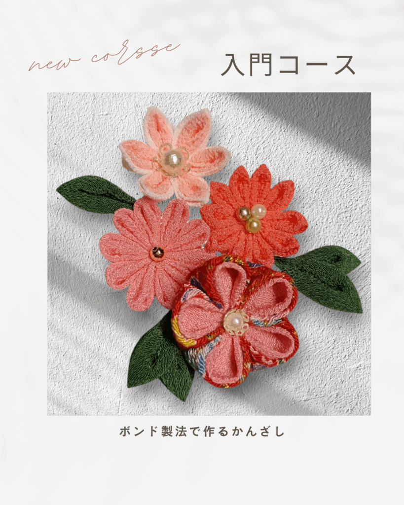 基本の丸つまみ、剣つまみから丁寧に指導し、美しい花々が少しずつ形になっていく感動を体験してください。